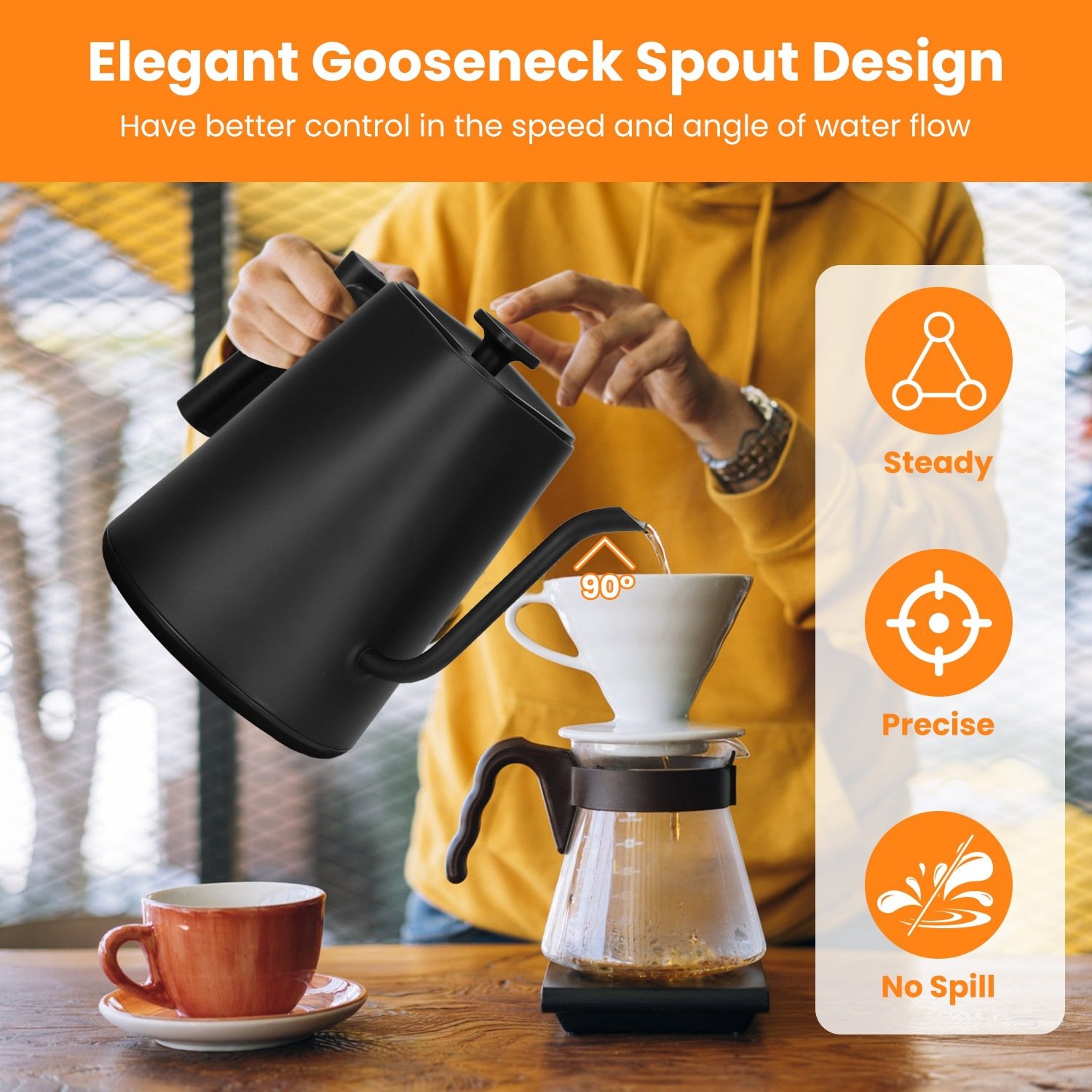 2.Designed with unique gooseneck water spout, elegant long and slender spout helps you have better control of speed and angle