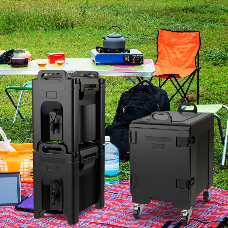 4.Humanized design: This insulated beverage dispenser is equipped with two ergonomic handles for easy carrying anywhere you want. And spring action faucet with o-ring seals can effectively prevent leaks and provide heat retention. In addition, it comes with nylon latches, which won't rust or dent.