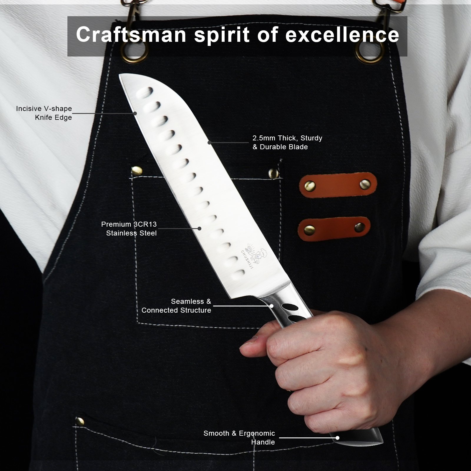 [Craftsman spirit of excellence]Professional satin-polished and high-quality Stainless Steel blades are precision cut and finely ground for long-term use and razor-sharp. After many trials and careful calculations, premium Chef Knife Set, Santoku Knife, Utility Knife are obtained for easy and convenient cutting.