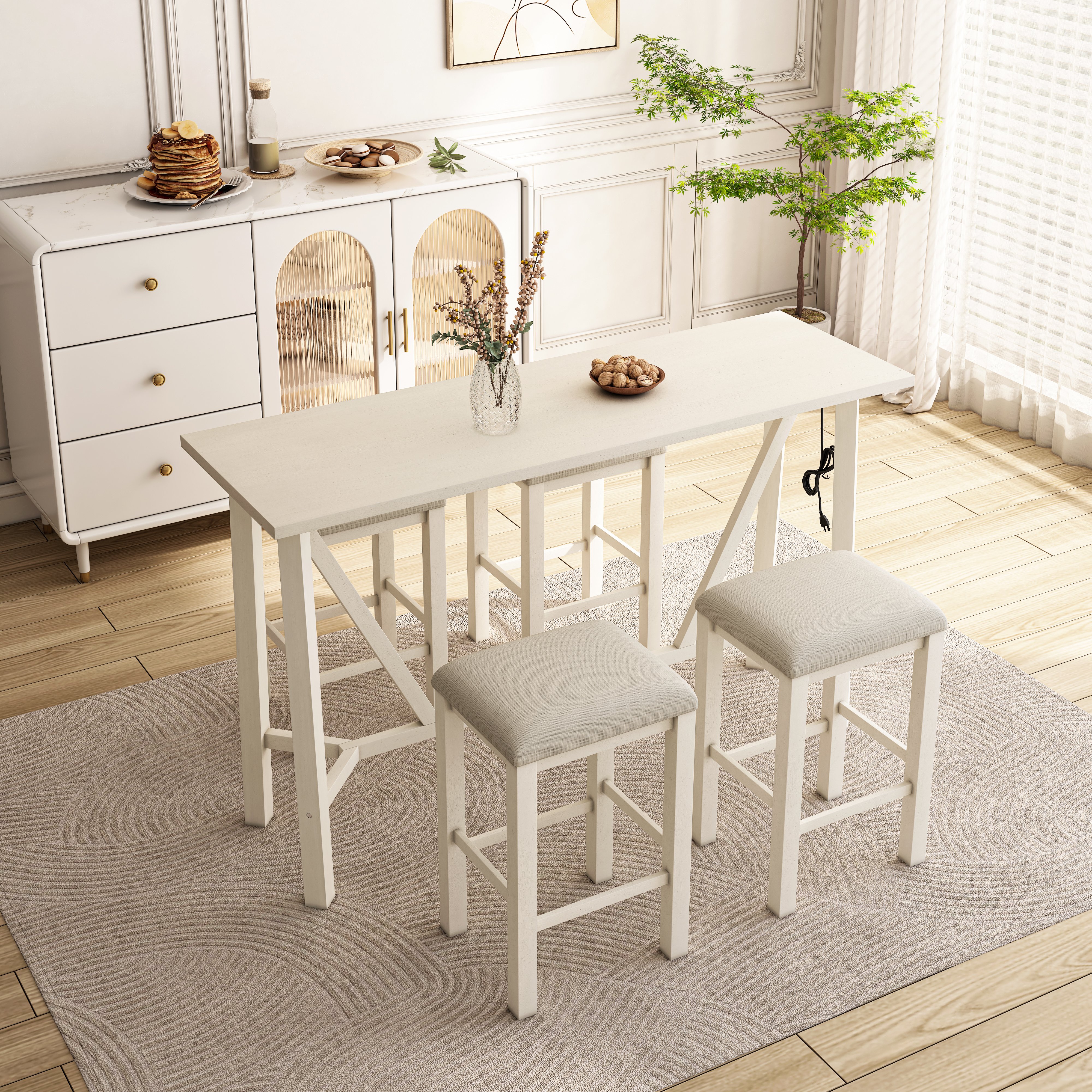 Modern 5-Piece Dining Table Set with Power Outlets,Bar Kitchen Table Set with Upholstered Stools, Easy Assemble, Beige