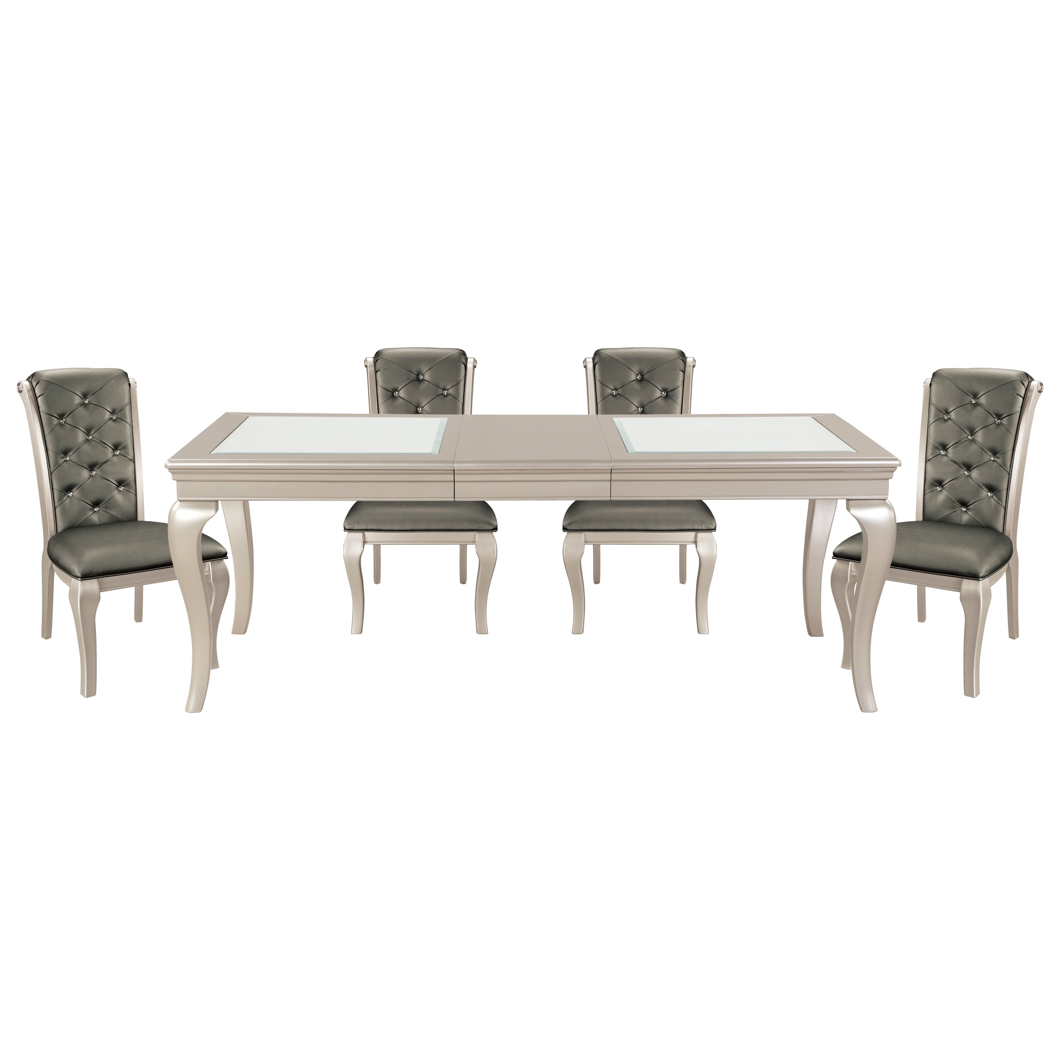 Home > Modern Glam Silver Finish 5pc Dining Set Table with Extension Leaf and 4 Side Chairs Crystal Button-Tufted Traditional Style Dining Furniture